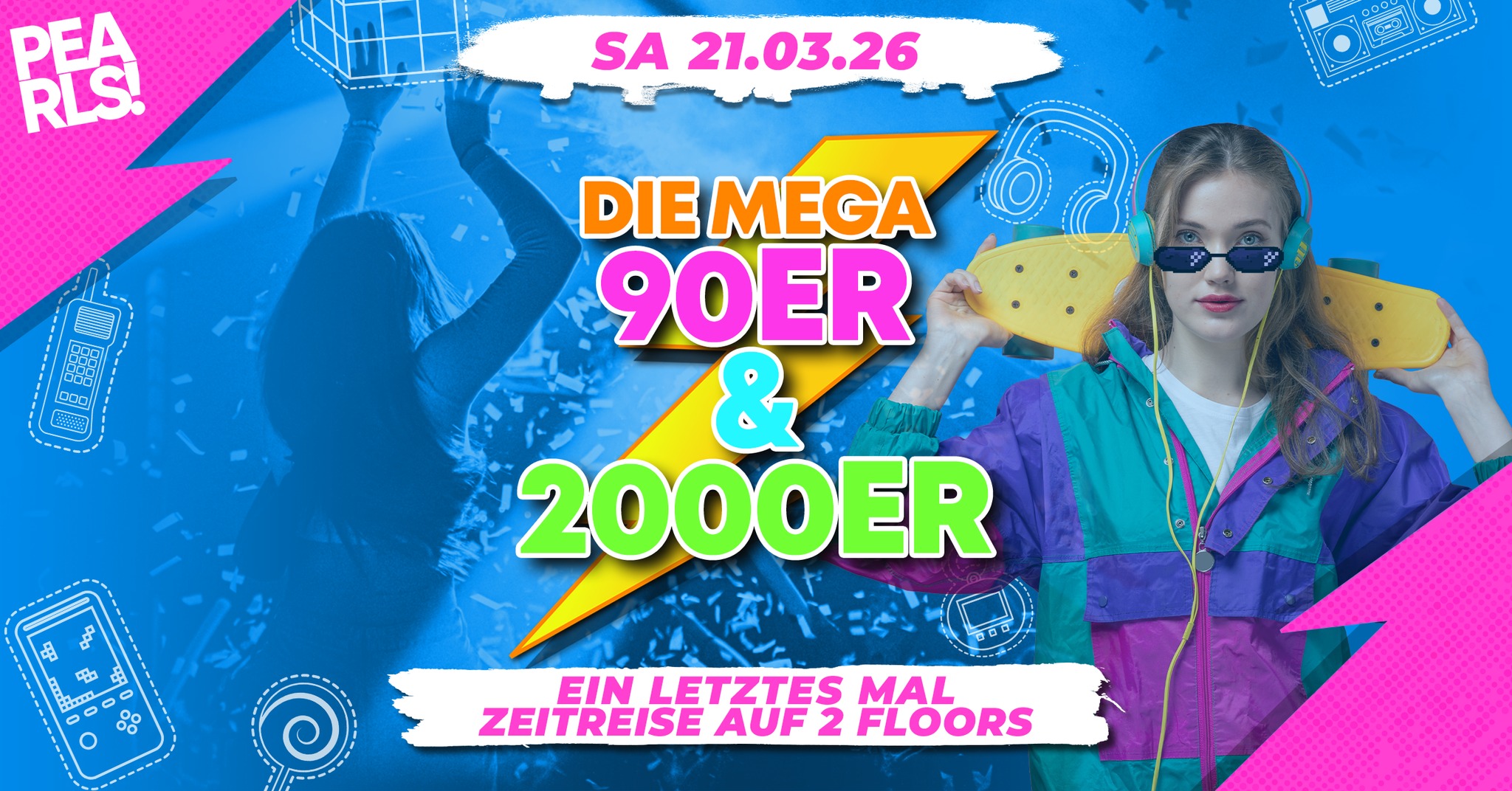 Am 21.03. feiern wir ein letztes Mal die MEGA 90er & 2000er Party auf 2 Floors im Pearls! Wir holen euch die 90er & 2000er das letzte Mal zurück nach Nabburg und feiern die aufregendste Zeitreise des Jahres. ❤️😻